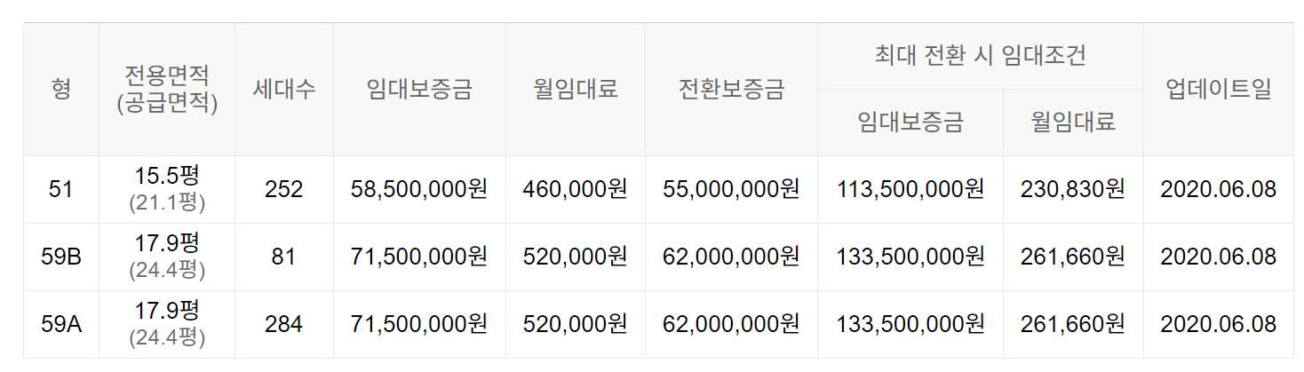 임대보증금 및 월 임대료는 입주자 모집공고일 기준이며, 보증금 최대 전환 시 변동될 수 있습니다.