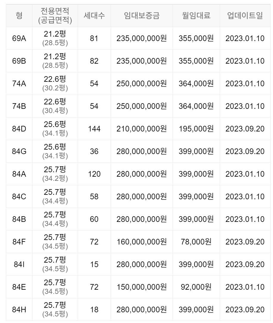 임대보증금 및 월 임대료는 입주자 모집공고일 기준이며, 보증금 최대 전환 시 변동될 수 있습니다.
