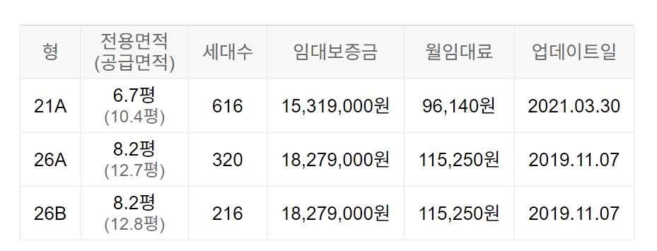 임대보증금 및 월 임대료는 입주자 모집공고일 기준이며, 보증금 최대 전환 시 변동될 수 있습니다.