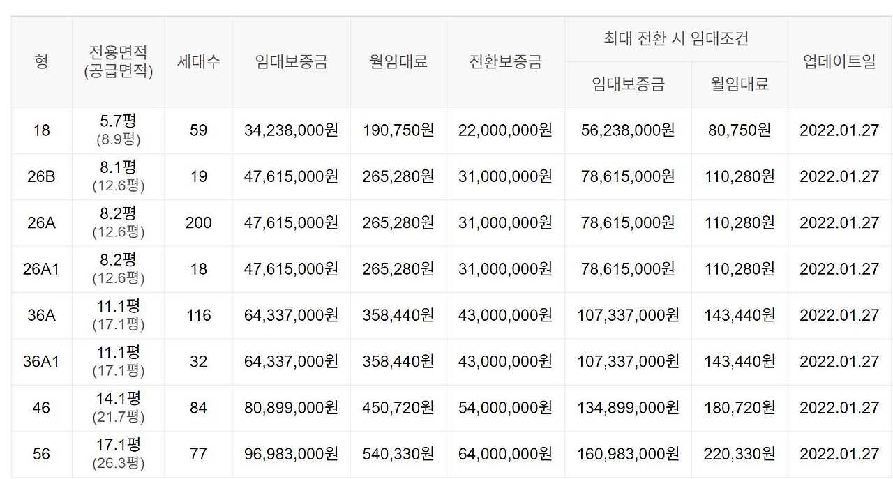 임대보증금 및 월 임대료는 입주자 모집공고일 기준이며, 보증금 최대 전환 시 변동될 수 있습니다.