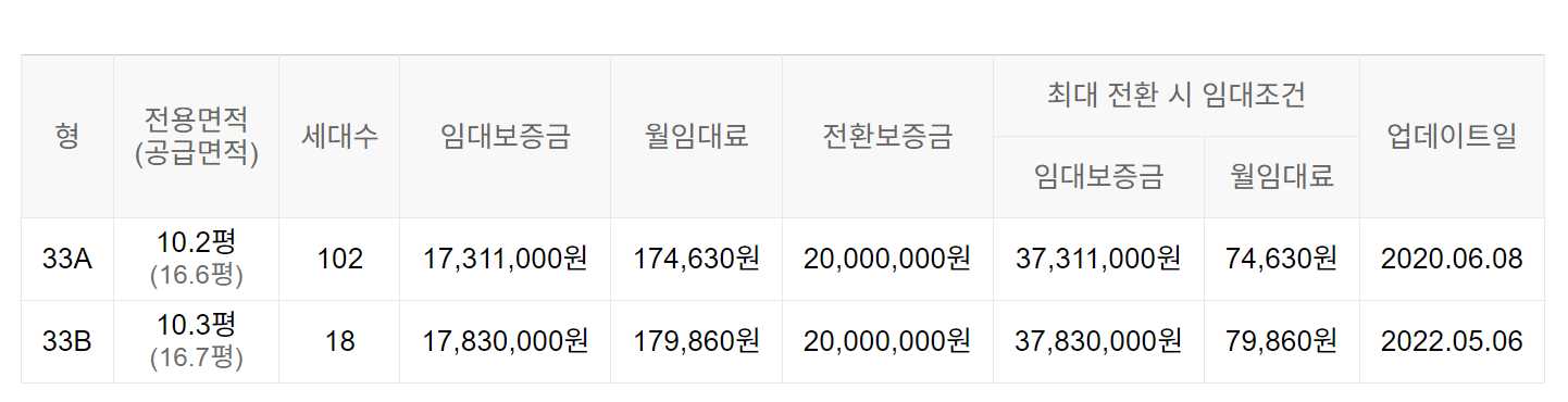 임대보증금 및 월 임대료는 입주자 모집공고일 기준이며, 보증금 최대 전환 시 변동될 수 있습니다.