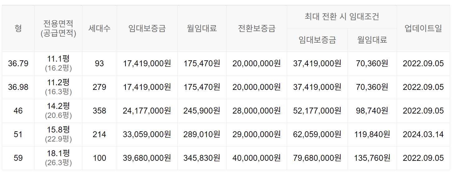 임대보증금 및 월 임대료는 입주자 모집공고일 기준이며, 보증금 최대 전환 시 변동될 수 있습니다.