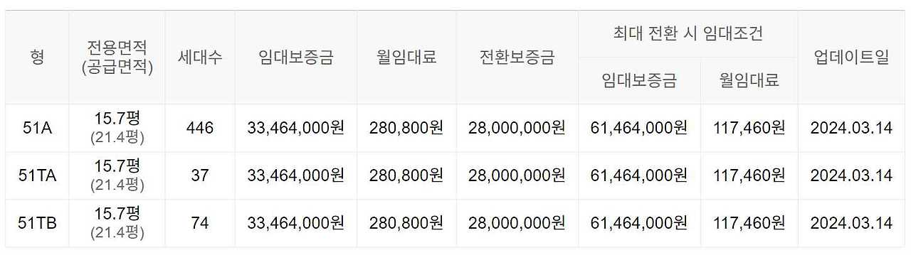임대보증금 및 월 임대료는 입주자 모집공고일 기준이며, 보증금 최대 전환 시 변동될 수 있습니다.