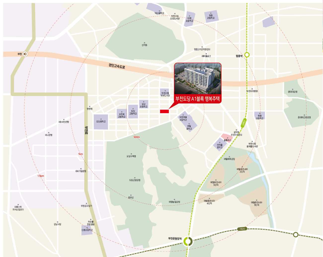 - 지하철역 부천종합운동장역(2km), 원종역(1.4km)