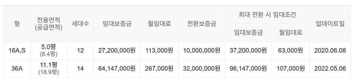 임대보증금 및 월 임대료는 입주자 모집공고일 기준으로 보증금 최대 전환 시 변동될 수 있습니다.