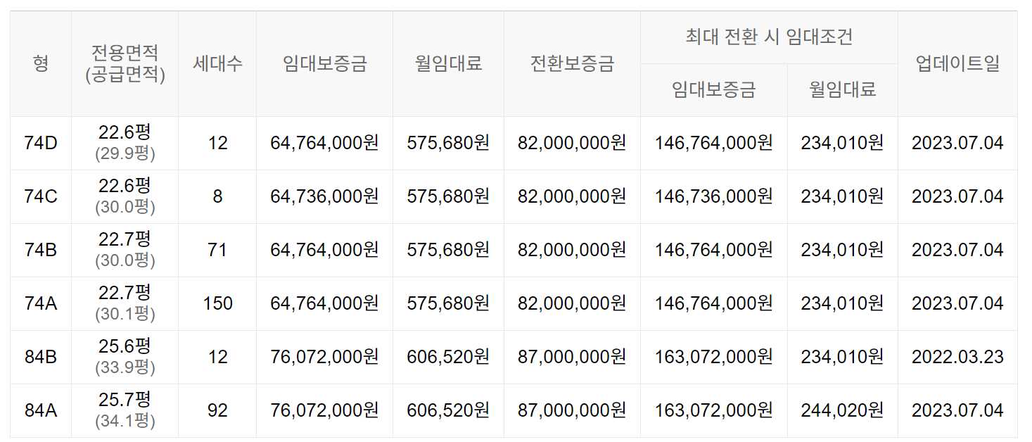 임대보증금 및 월 임대료는 입주자 모집공고일 기준이며, 보증금 최대 전환 시 변동될 수 있습니다.