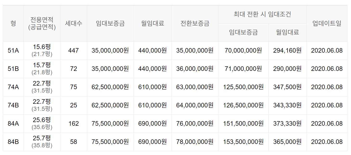임대보증금 및 월 임대료는 입주자 모집공고일 기준이며, 보증금 최대 전환 시 변동될 수 있습니다.