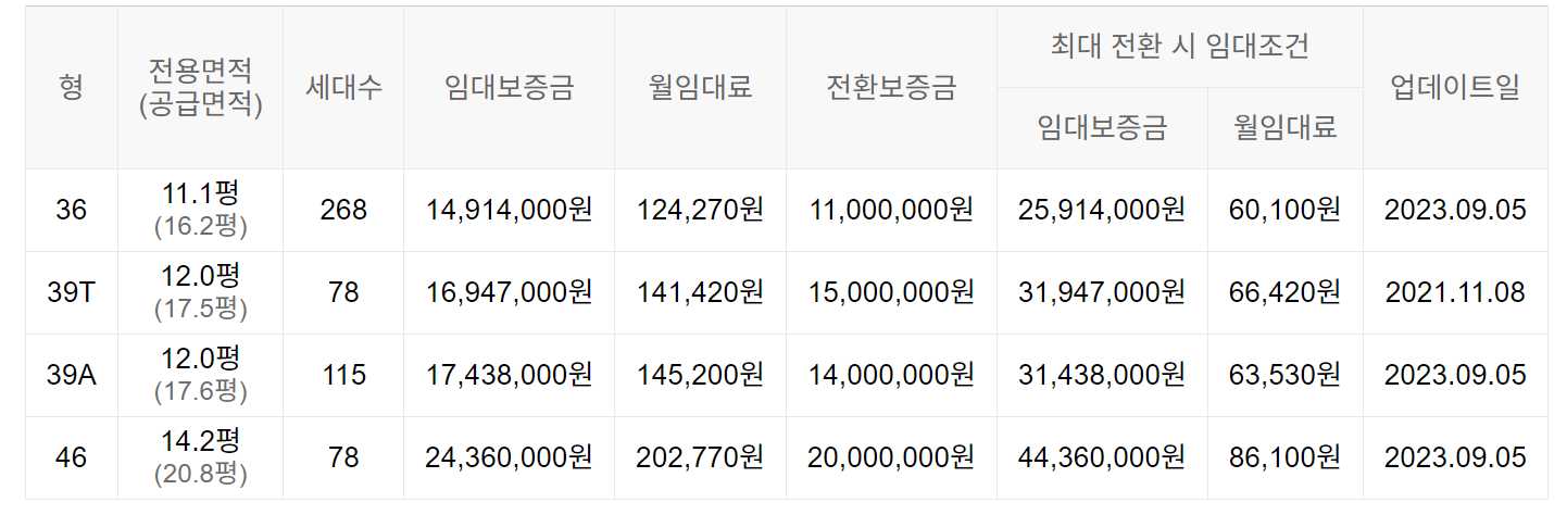 임대보증금 및 월 임대료는 입주자 모집공고일 기준이며, 보증금 최대 전환 시 변동될 수 있습니다.