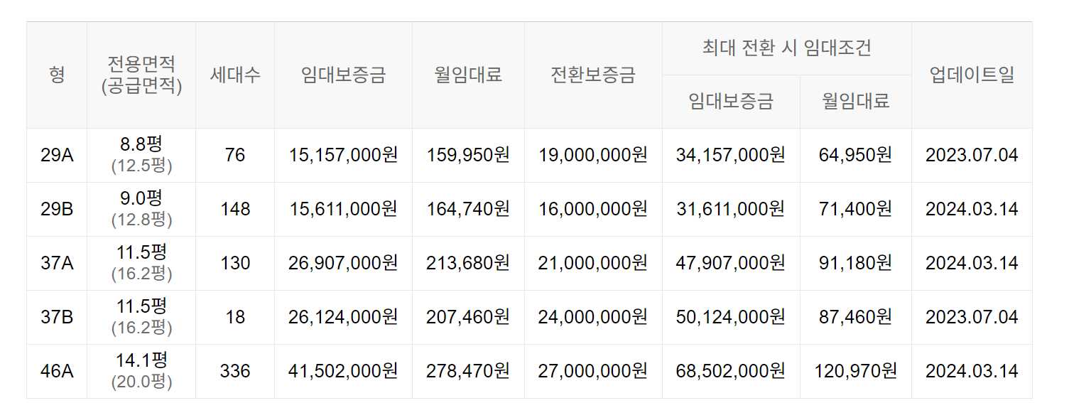 임대보증금 및 월 임대료는 입주자 모집공고일 기준이며, 보증금 최대 전환 시 변동될 수 있습니다.