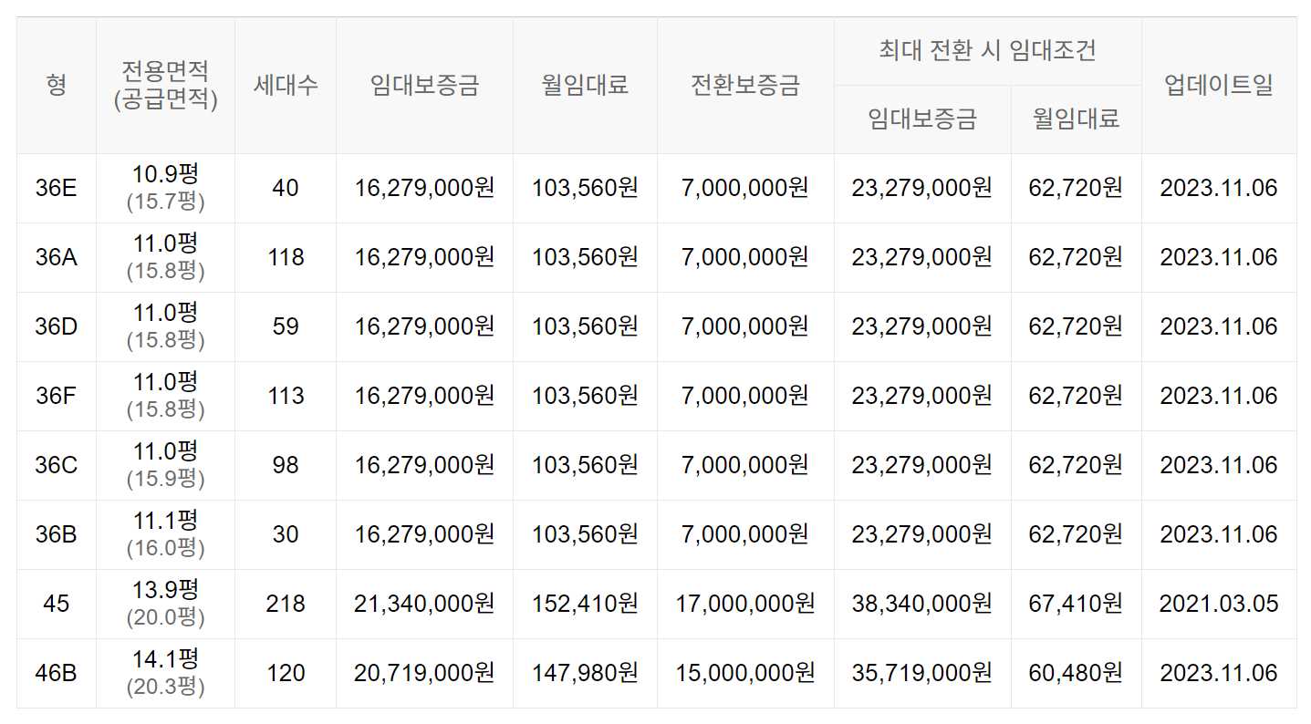 임대보증금 및 월 임대료는 입주자 모집공고일 기준이며, 보증금 최대 전환 시 변동될 수 있습니다.