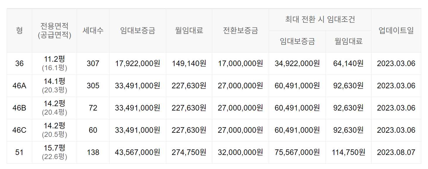 임대보증금 및 월 임대료는 입주자 모집공고일 기준이며, 보증금 최대 전환 시 변동될 수 있습니다.