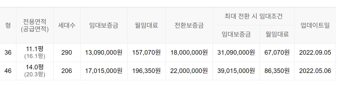 임대보증금 및 월 임대료는 입주자 모집공고일 기준이며, 보증금 최대 전환 시 변동될 수 있습니다.