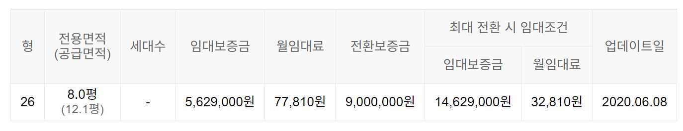 임대보증금 및 월 임대료는 입주자 모집공고일 기준이며, 보증금 최대 전환 시 변동될 수 있습니다.