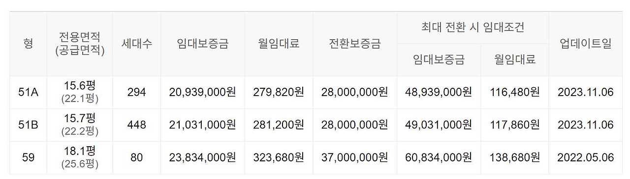 임대보증금 및 월 임대료는 입주자 모집공고일 기준이며, 보증금 최대 전환 시 변동될 수 있습니다.