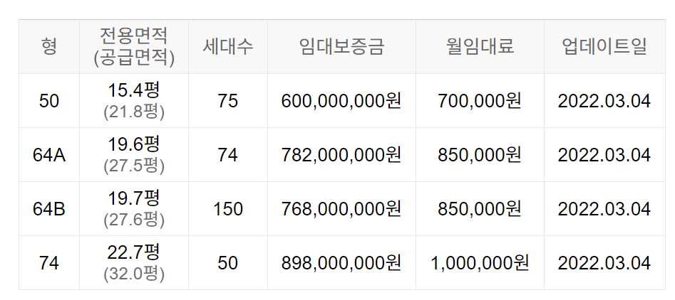 임대보증금 및 월 임대료는 입주자 모집공고일 기준이며, 보증금 최대 전환 시 변동될 수 있습니다.
