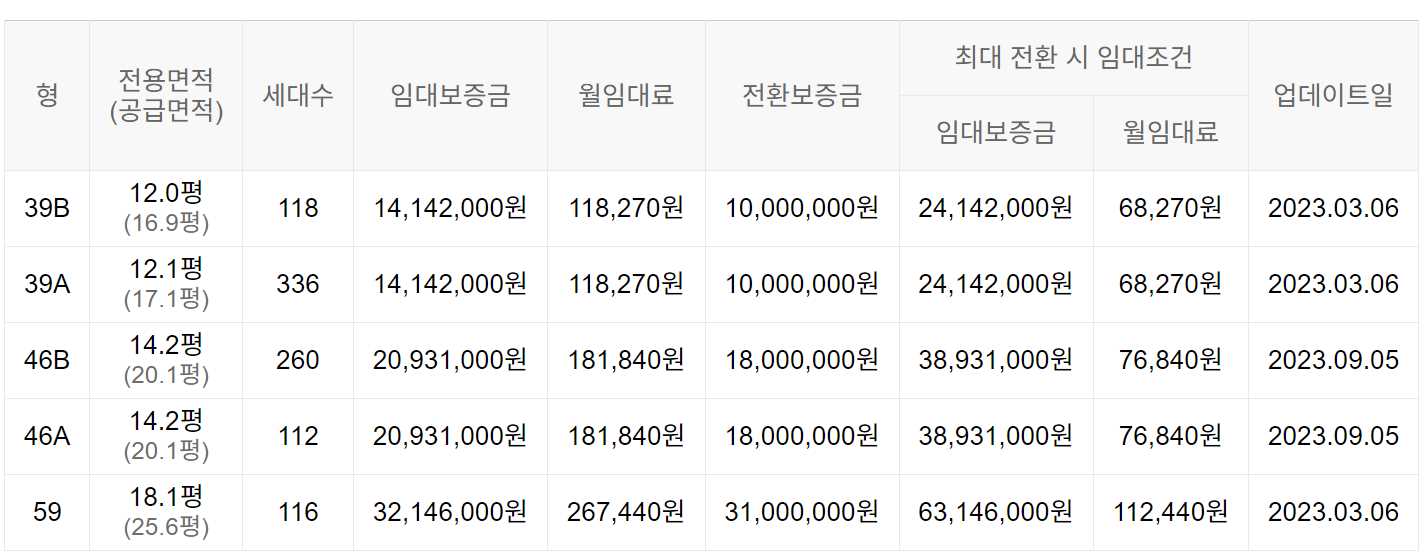 임대보증금 및 월 임대료는 입주자 모집공고일 기준이며, 보증금 최대 전환 시 변동될 수 있습니다.