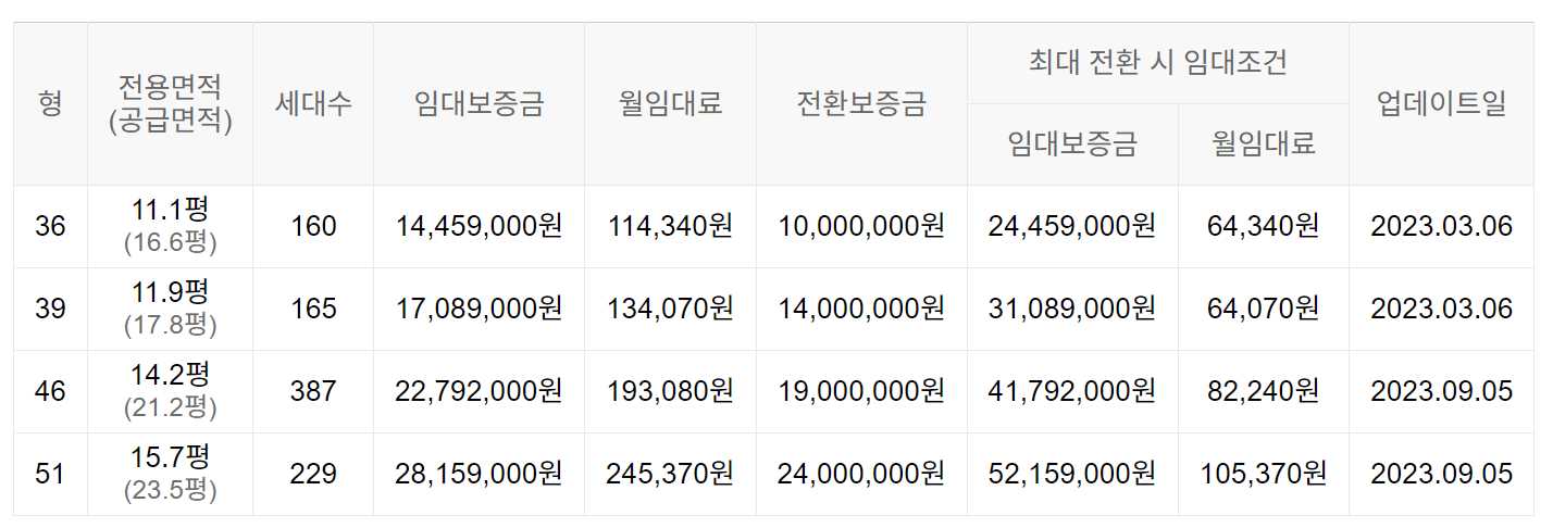 임대보증금 및 월 임대료는 입주자 모집공고일 기준이며, 보증금 최대 전환 시 변동될 수 있습니다.