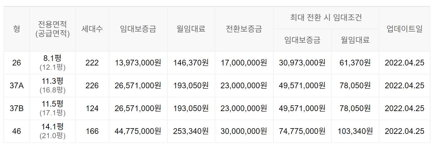 임대보증금 및 월 임대료는 입주자 모집공고일 기준이며, 보증금 최대 전환 시 변동될 수 있습니다.