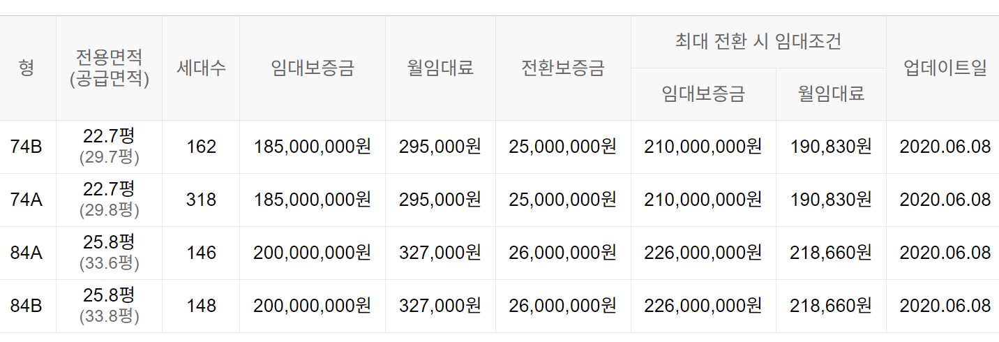임대보증금 및 월 임대료는 입주자 모집공고일 기준이며, 보증금 최대 전환 시 변동될 수 있습니다.
