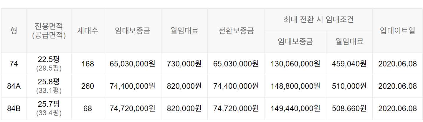 임대보증금 및 월 임대료는 입주자 모집공고일 기준이며, 보증금 최대 전환 시 변동될 수 있습니다.