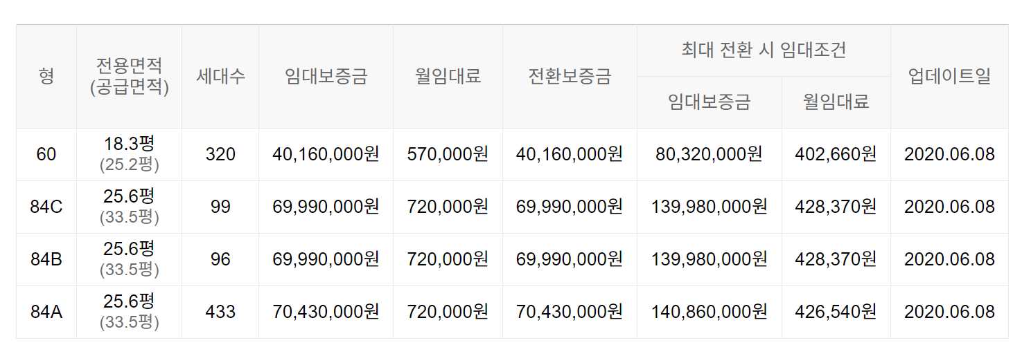 임대보증금 및 월 임대료는 입주자 모집공고일 기준이며, 보증금 최대 전환 시 변동될 수 있습니다.
