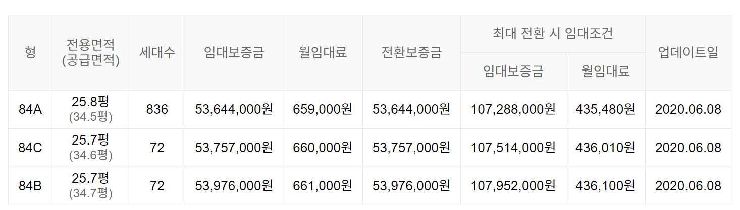 임대보증금 및 월 임대료는 입주자 모집공고일 기준이며, 보증금 최대 전환 시 변동될 수 있습니다.