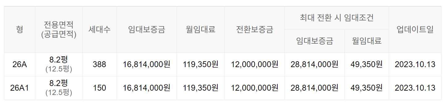 임대보증금 및 월 임대료는 입주자 모집공고일 기준이며, 보증금 최대 전환 시 변동될 수 있습니다.