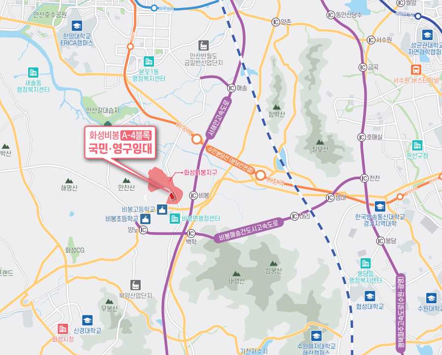 화성비봉A4은 다양한 편의시설을 갖춘 지역에 위치하고 있습니다.