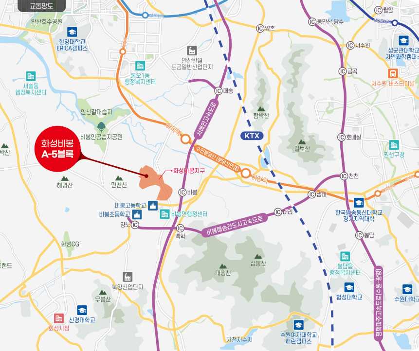 화성비봉A-5블록은 다양한 편의시설을 갖춘 지역에 위치하고 있습니다.