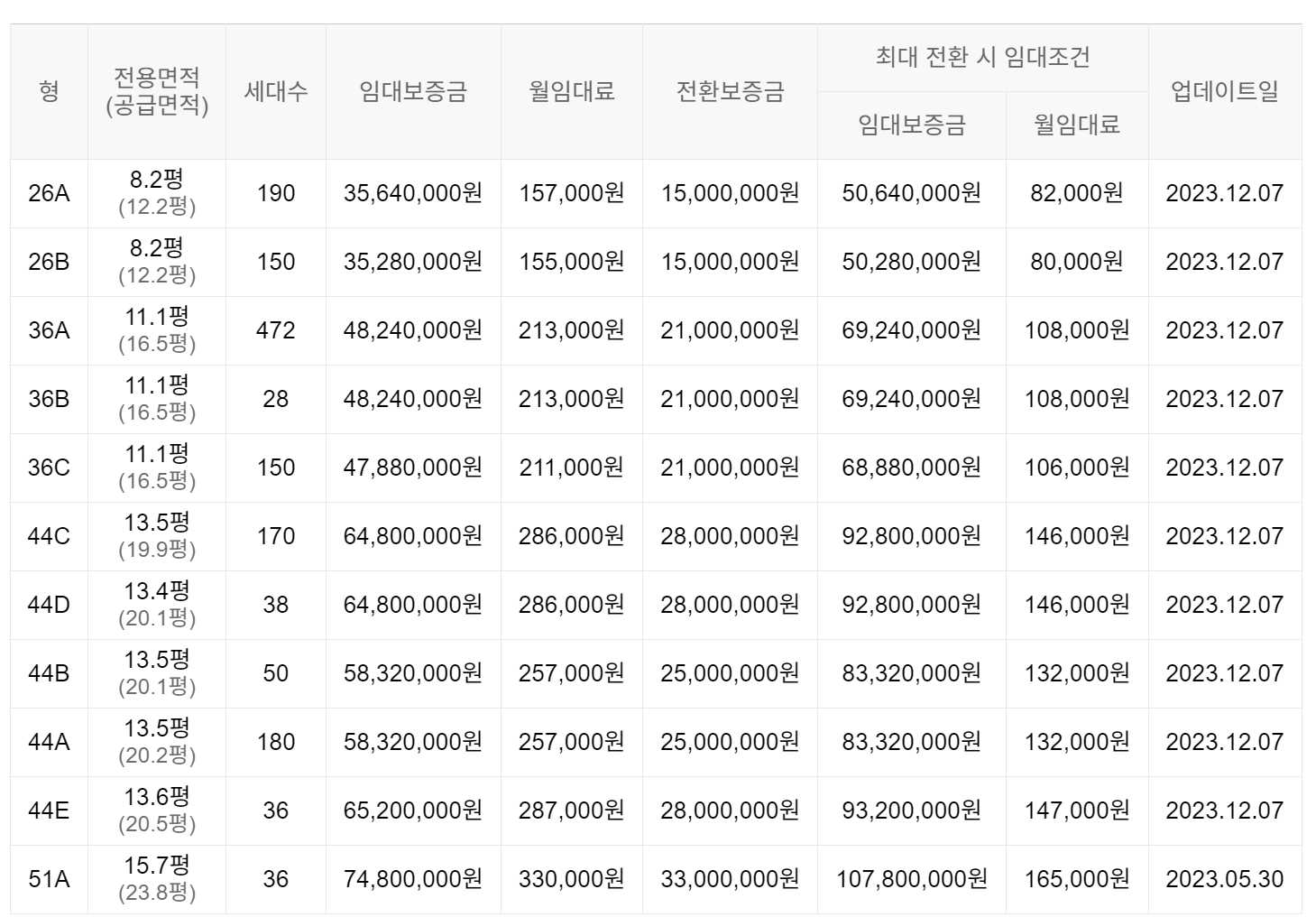 임대보증금 및 월 임대료는 입주자 모집공고일 기준으로 보증금 최대 전환 시 변동될 수 있습니다.