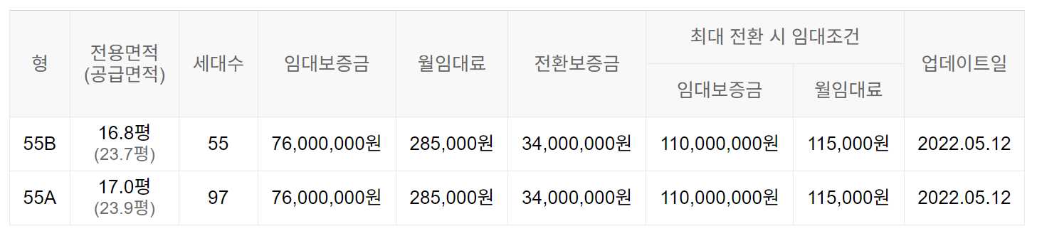 임대보증금 및 월 임대료는 입주자 모집공고일 기준으로 보증금 최대 전환 시 변동될 수 있습니다.