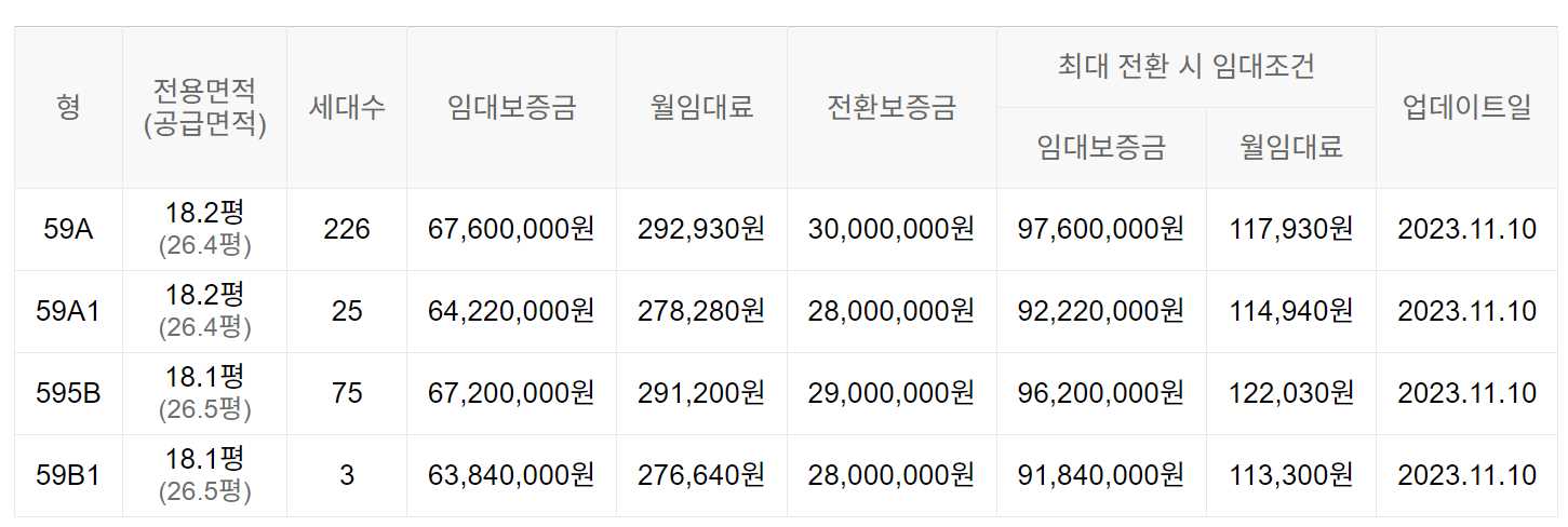 임대보증금 및 월 임대료는 입주자 모집공고일 기준으로 보증금 최대 전환 시 변동될 수 있습니다.